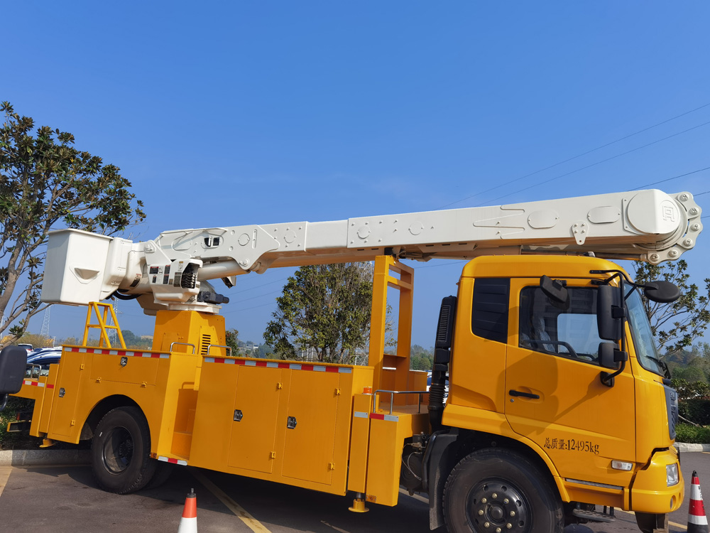 四、其他說明: 該車用途為搶修電力,通訊,路燈等高空作業;主要裝置為作業臂.側防護采用Q235材質,側防護裝置為整體式裙邊結構,由車身結構代替;后防護采用Q235材質焊接連接,后部防護斷面尺寸(mm):50×120,后部防護離地高度(mm):480.選裝作業斗和兩側裙邊結構,隨底盤選裝駕駛室。