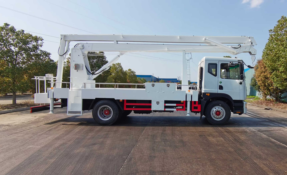 四、其他說明: 東風多利卡21米折臂高空作業車,折臂式結構使得車輛在狹小空間內也能靈活作業,可輕松到達一些直臂式高空作業車難以到達的位置,如建筑物的拐角、狹窄街道等。臂架的伸縮和回轉速度較快,能夠快速將作業人員和工具送到指定位置,提高了作業效率,減少了作業時間。