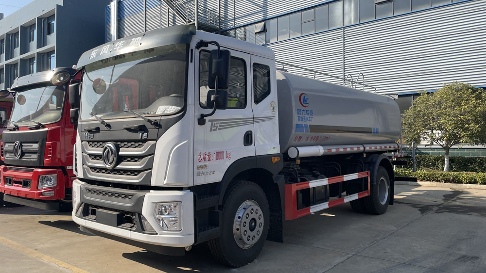 三、選裝配置: 選配駕駛室內電控氣動操作;大鴨嘴前沖噴頭壹對;萬向前沖球閥;路面沖洗水管卷盤;本田高壓水泵,水槍可沖洗人行道、移動洗車等; 藥盤;長警燈,LED箭頭燈;罐側帶閘門,罐后加裝噴霧降塵裝置;灑水車泵標配程力泵選配杭州威龍泵;可對主管道加粗,可選316大口徑球閥;罐體內防腐、保溫、襯塑處理,灑水車作運水車用可加裝自流口。運熱水罐體可做保溫,運生活用水可做食品級304不銹鋼罐體。