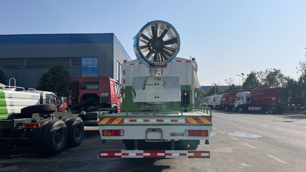 二、多功能抑塵車特點:搭載我司自主研發的專用風送式霧炮機(噴霧機),不同霧炮,搭配功率不同的副發動機,射程可達30-120米。噴霧機可實現無線遠程遙控作業,操控簡單靈活,安全可靠。多功能抑塵車兼具綠化噴灑,消防應急,除塵降塵,噴藥消毒等功能,具有功率大、用水量少、射程遠、覆蓋面積廣、抑塵效果好、作業效率高、噴霧速度快等特點。