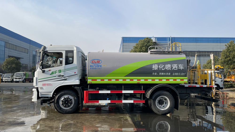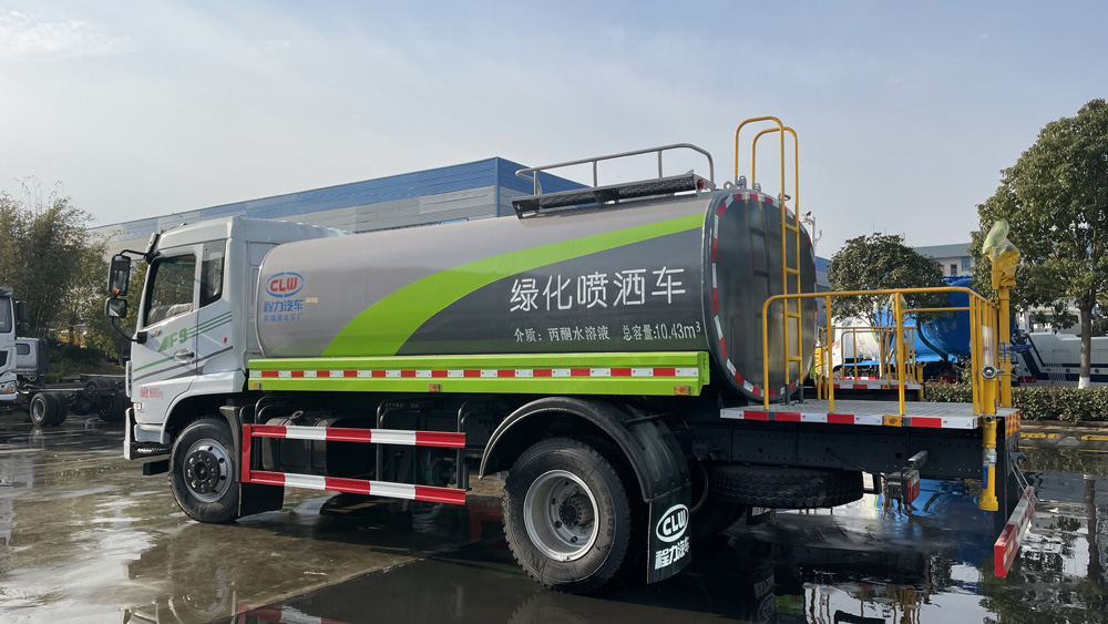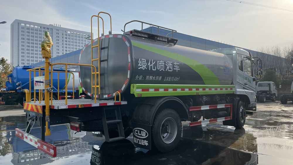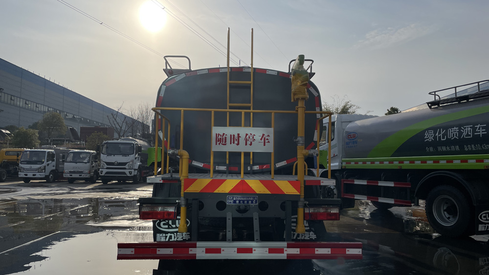 三、選裝配置: 選配駕駛室內(nèi)電控氣動操作;大鴨嘴前沖噴頭壹對;萬向前沖球閥;路面沖洗水管卷盤;本田高壓水泵,水槍可沖洗人行道、移動洗車等; 藥盤;長警燈,LED箭頭燈;罐側(cè)帶閘門,罐后加裝噴霧降塵裝置;灑水車泵標(biāo)配程力泵選配杭州威龍泵;可對主管道加粗,可選316大口徑球閥;罐體內(nèi)防腐、保溫、襯塑處理,灑水車作運水車用可加裝自流口。運熱水罐體可做保溫,運生活用水可做食品級304不銹鋼罐體。